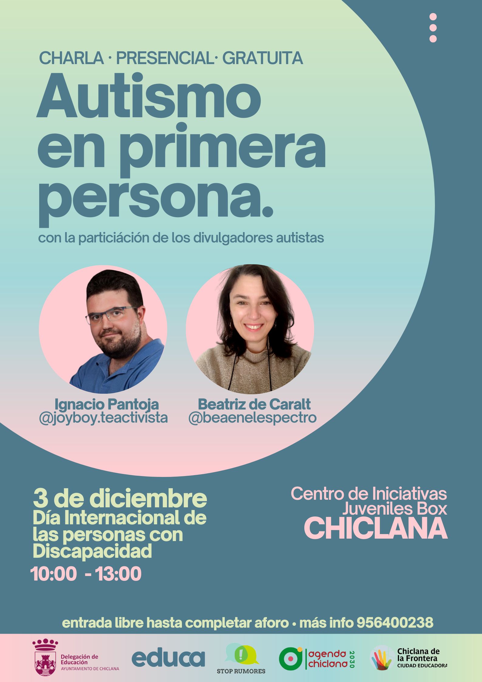 Os informamos de la interesantísima actividad, con motivo del Día Internacional de las personas con discapacidad, propuesta por la Delegación de Educación dela Ayto. de Chiclana para el próximo 3 de diciembre, partir de las 10:00 horas, en la sala BOX.